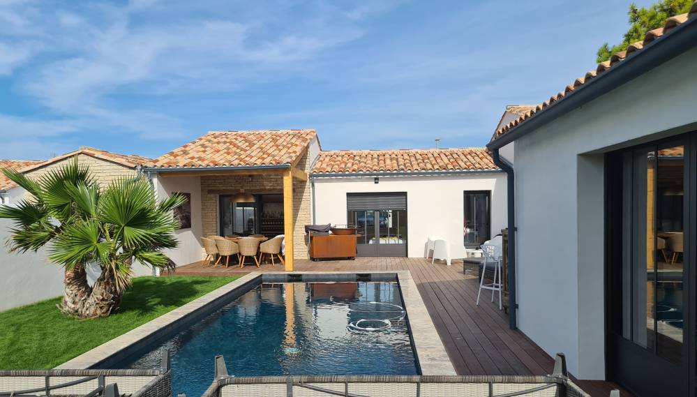 Située dans un secteur résidentiel dans la commune de Sainte Marie de Ré, l'enjeu du projet était de créer des volumes contemporains qui s'inscrivent dans la charte graphique de l'Île de Ré, fortement identitaire.